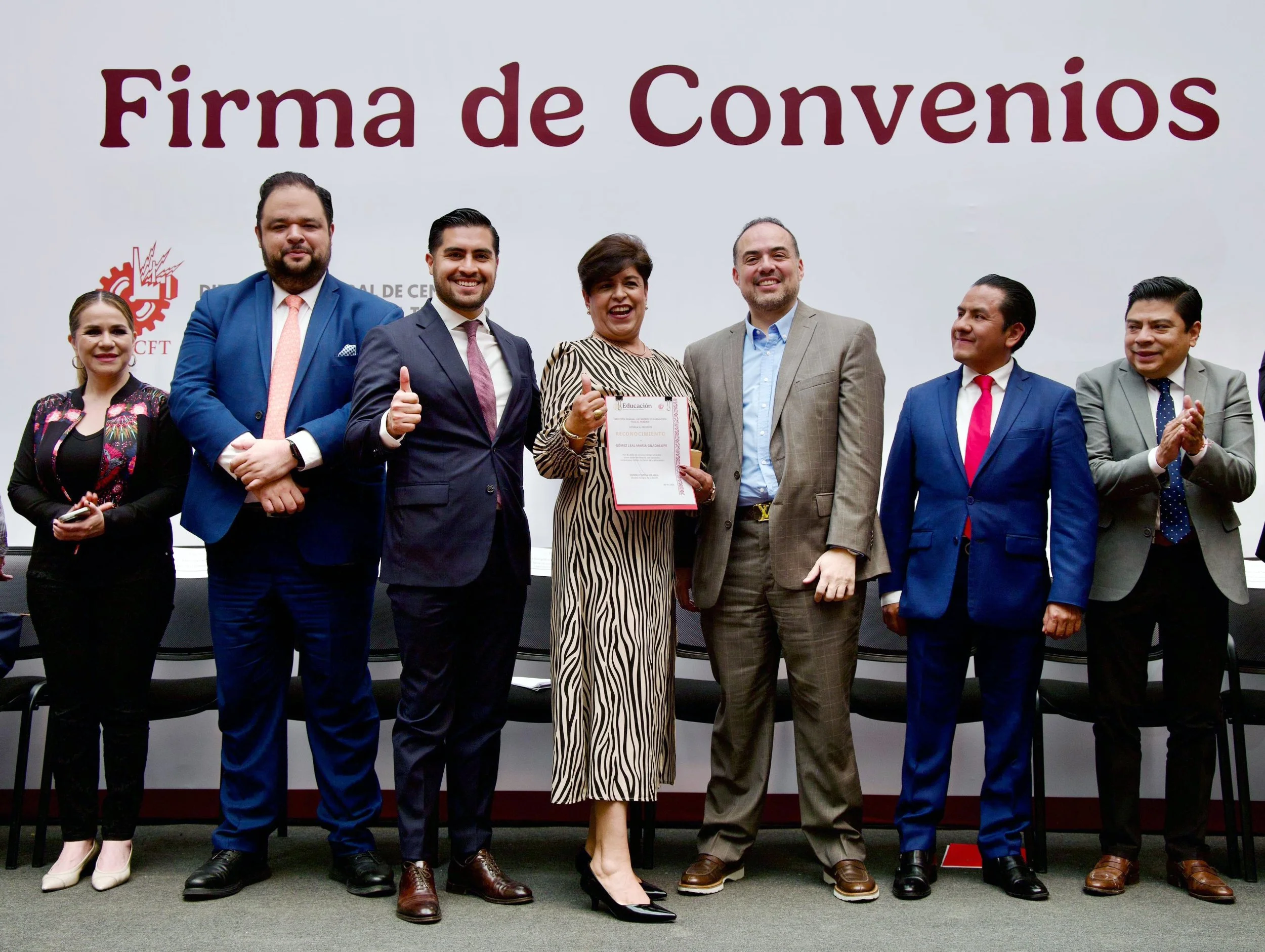 Durante la ceremonia de firma estuvieron presentes el director general de Centros de Formación para el Trabajo, José Gonzalo Espina Miranda, así como el Titular de la Unidad de Actualización Normativa, Legalidad y Regulación, José Eurípides Alejandro Flores Pacheco, ambos funcionarios de la Secretaría de Educación Pública del Gobierno Federal.